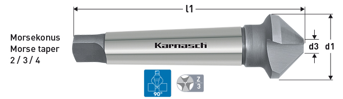 Karnasch Sænker 63,0mm 90gr. 3 Skærs. DIN335D MK4 HSSXE
