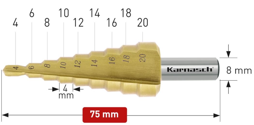 Karnasch Trinbor 4,0-20,0mm 2,0mm stign. 2 Skærs. HSSXE TiN