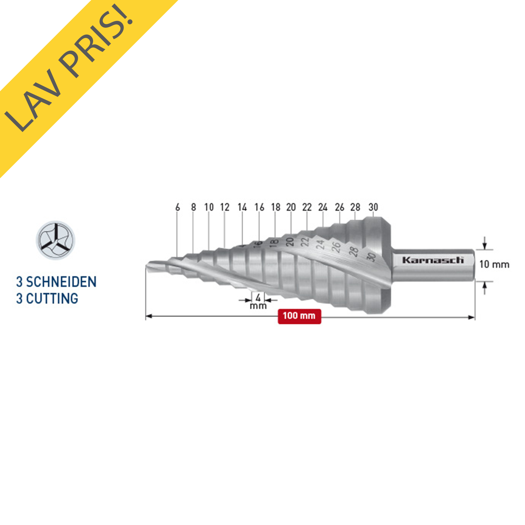 Karnasch Trinbor 4,0-20,0mm 2,0mm stign. 3 Skærs. HSSXE Restsalg