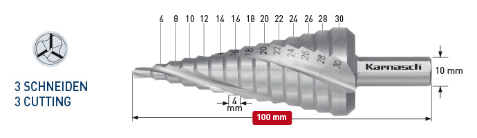 Karnasch Trinbor 6,0-30,0mm 2,0mm stign. 3 Skærs. HSSXE